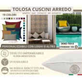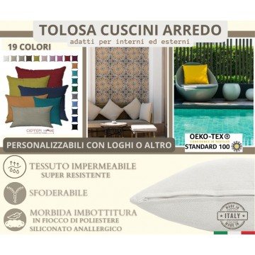 Cuscino arredo sfoderabile IDROREPELLENTE. La particolarità di questo tessuto è la sua morbidezza al tatto, per la percentuale maggiore di cotone e nello stesso tempo l'antimacchia dato dalla presenza di fibre di tessuto in poliestere di alta qualità che assicurano tali caratteristiche. La sua struttura robusta e il trattamento idro-oleorepellente lo rendono resistente all'umidità e alle macchie, garantendo una lunga durata nel tempo. Con un peso di 234 g/m², offre un equilibrio perfetto tra consistenza e maneggevolezza, facilitando la lavorazione e l'adattabilità a diverse esigenze progettuali. Disponibile in una vasta gamma di colori, il Tessuto Panama Tolosa si adatta facilmente a diversi stili di arredamento, dal classico al moderno. La sua finitura elegante e la resistenza lo rendono una scelta eccellente per chi cerca qualità e funzionalità in un unico prodotto. Ideali anche per esterno. Comodo e pratico da sfoderare grazie al sistema di chiusura lampo. Completo di imbottitura in fiocco di poliestere anallergico. 100% MADE IN ITALY. |