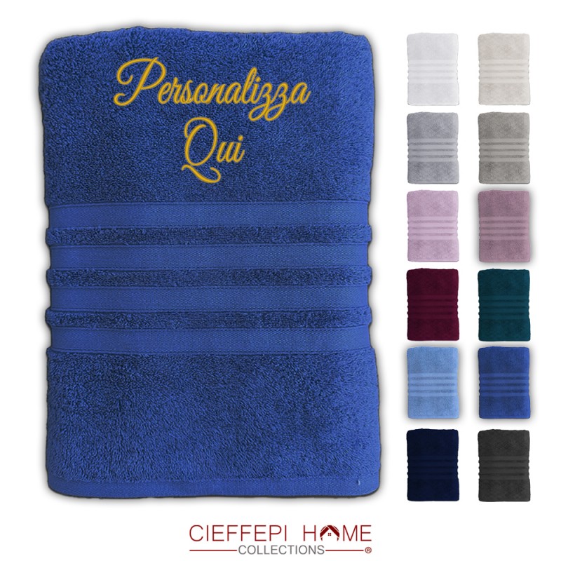 Telo doccia ultra resistente, ultra morbido, Personalizzabile con iniziali o nome. Spugna ultra assorbente, ultra resistente. OEKO-TEX N.B. Al momento dell'acquisto dovrai inserire nella nota messaggi la personalizzazione scelta (iniziali o nome intero) e il colore del cotone da utilizzare. La lunghezza del ricamo è di circa 9 cm. Più sono i caratteri da ricamare, minore è la loro dimensione. Se non specificato il colore del ricamo, provvederemo ad utilizzarne uno in abbinamento.