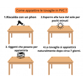 Impermeabili, resistenti e facilmente lavabili con un panno umido. Peso 320 gr/m2 Ogni nostra tovaglia è realizzabile da un minimo di 4 posti ad un massimo di 24 posti. L'aggiunta di poliestere rende questa tovaglia plastificata così morbida da farla apparire come un tessuto, piacevole al tatto. Ideali per chi ha fretta, impermeabili abbastanza da permettere una adeguata e facile pulizia. Danno un tocco di eleganza alla cucina o al soggiorno. Le tovaglie in pvc sono state viste come la soluzione pratica per proteggere il tavolo della cucina, sono un accessorio alla moda perfetto per migliorare tutte le cucine, dalla classica cucina della casa colonica alla cucina più moderna. Proteggono egregiamente il tavolo da possibili graffi e usura. I nostri copritavolo e tovaglie plastificate sono realizzati in ITALIA secondo gli standard di qualità UE. Le tovaglie in pvc sono durevoli e riutilizzabili. Sono testate contro le sostanze nocive e possiedono certificati OEKO TEX standard 100. Non tossico e senza BPA. La tovaglia in pvc è impermeabile, materiale resistente con aspetto tessile. Può essere utilizzata per tavoli interni ed esterni: per tavoli da giardino dove un clima imprevedibile rappresenta un rischio. La tovaglia plastificata rettangolare, rotonda o quadrata è riutilizzabile e può essere piegata e conservata. Se necessario può essere facilmente tagliata con forbici per ricavare protezioni e coperture di altri arredi casalinghi o da giardino. |